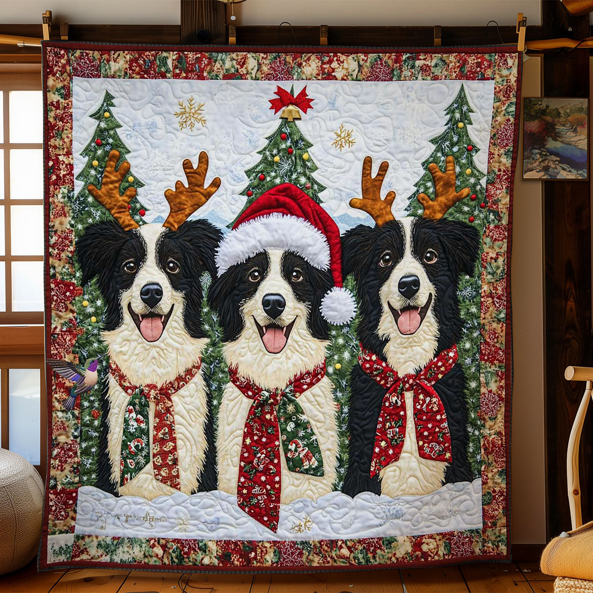 Border Collie Christmas Cheer WN2911015CL Quilt