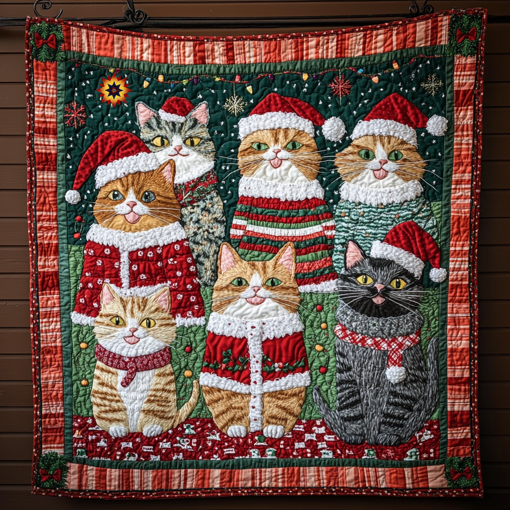 Christmas Playful Cats WU1612005CL Quilt