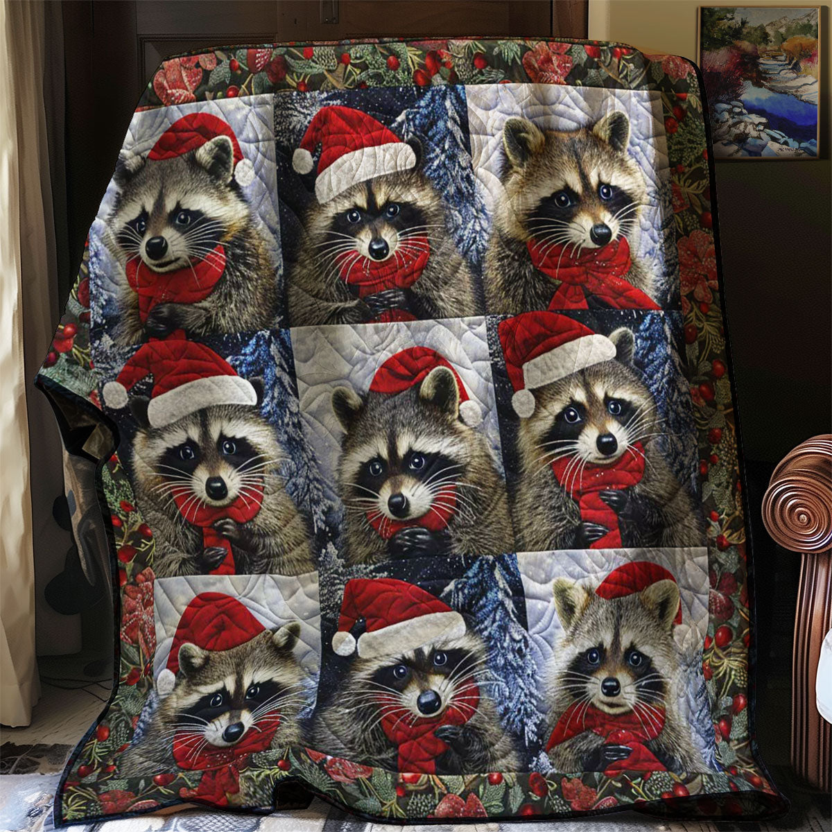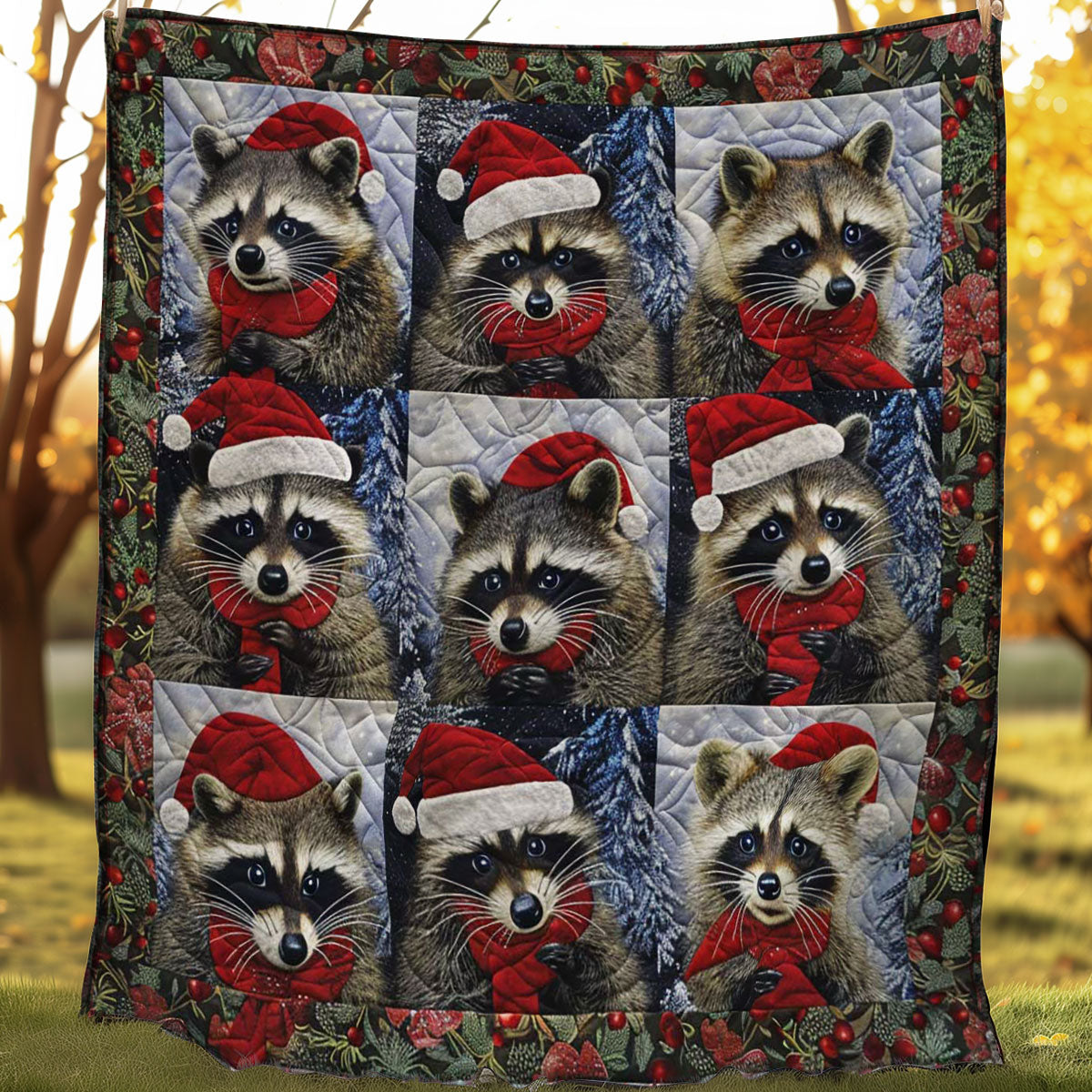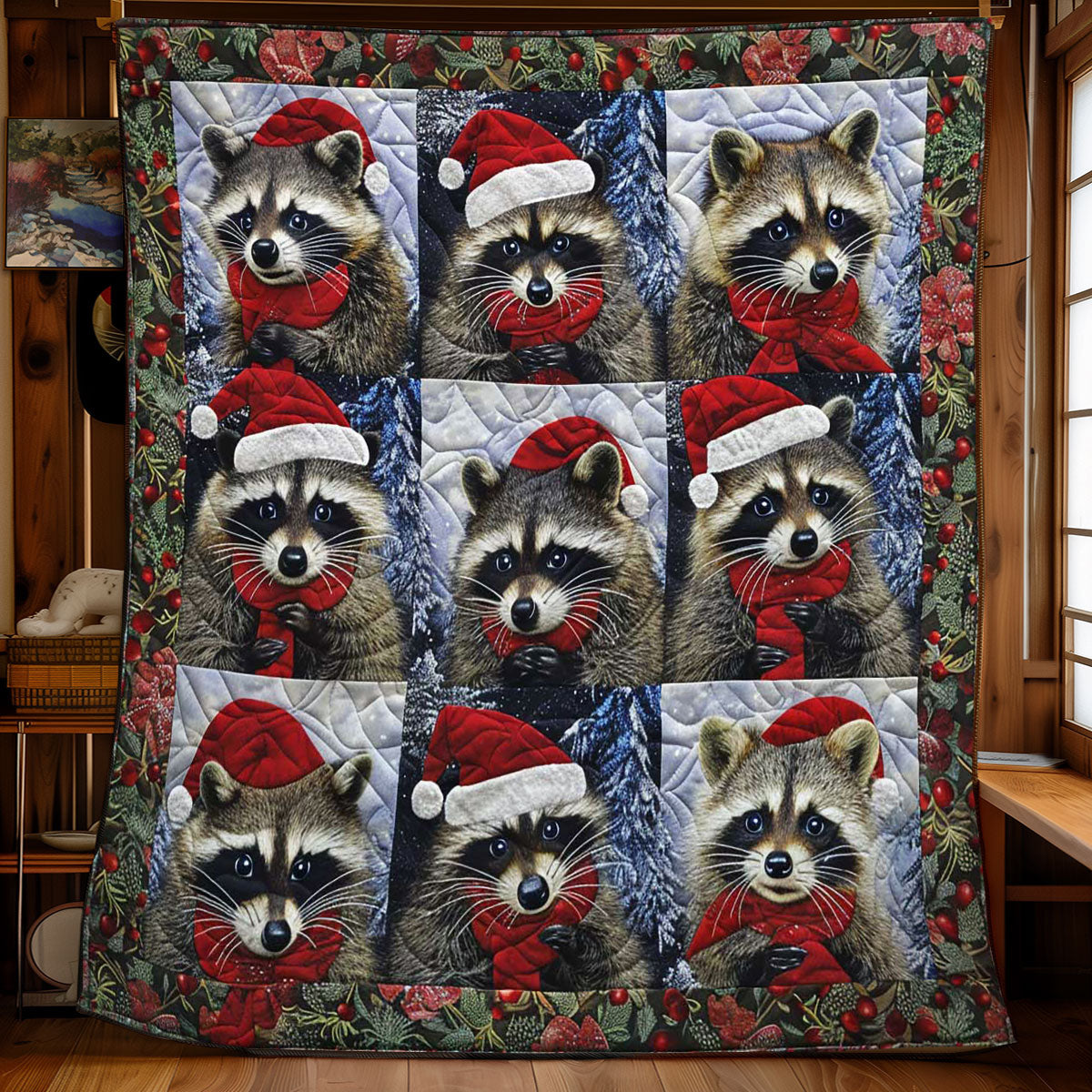 Christmas Raccoon Snuggles WN1508079CL Quilt