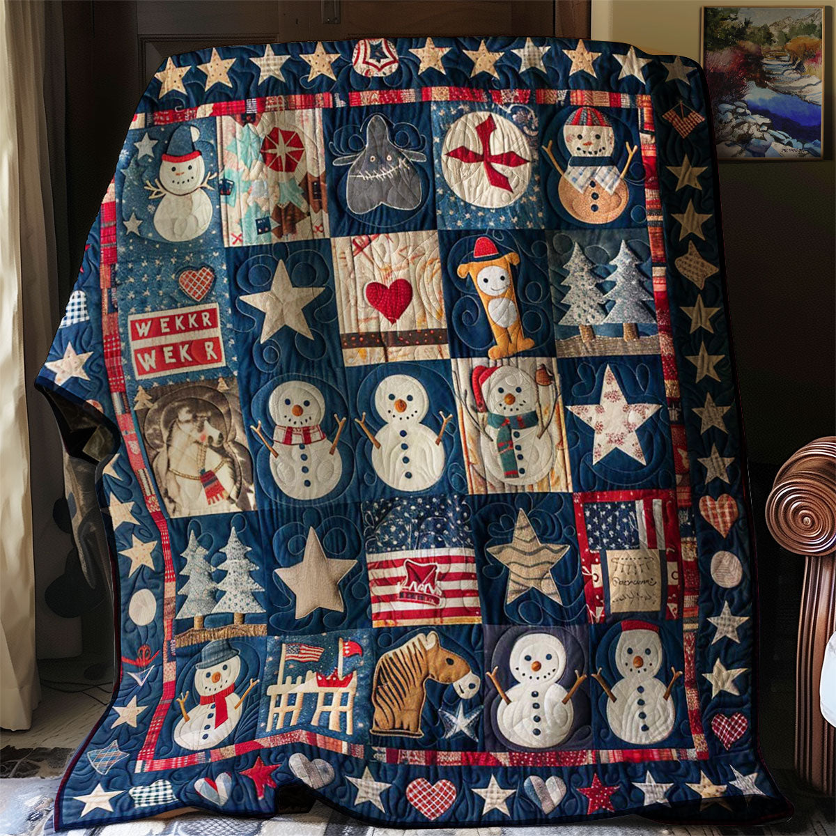 Meticulously quilted blanket carefully constructed with tight, durable stitches, reinforced seams keeping its shape and structure, ensuring it holds up beautifully over time.