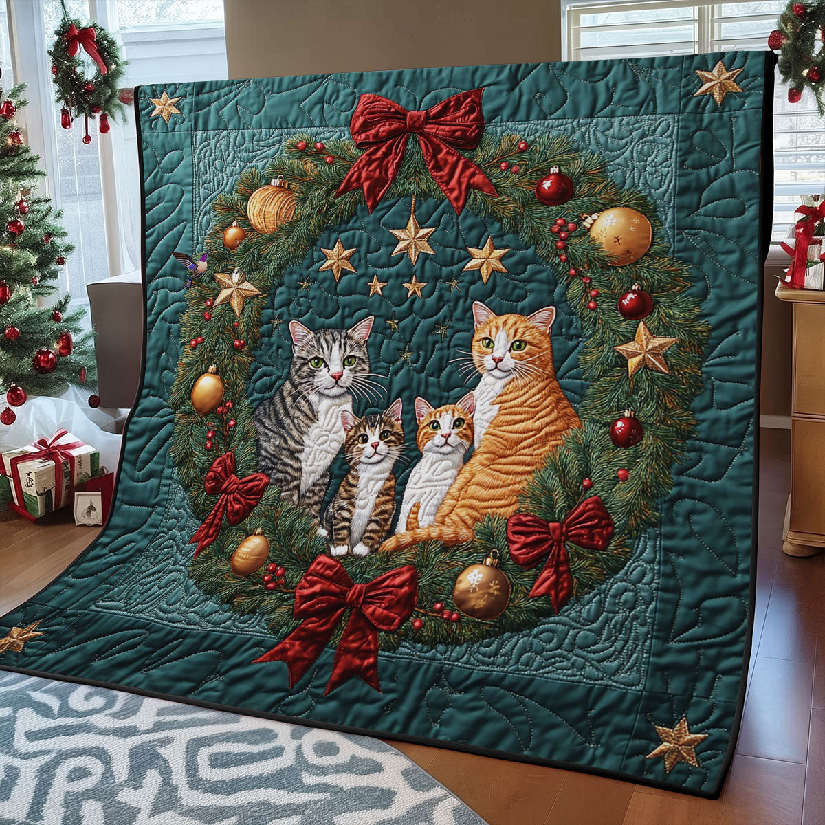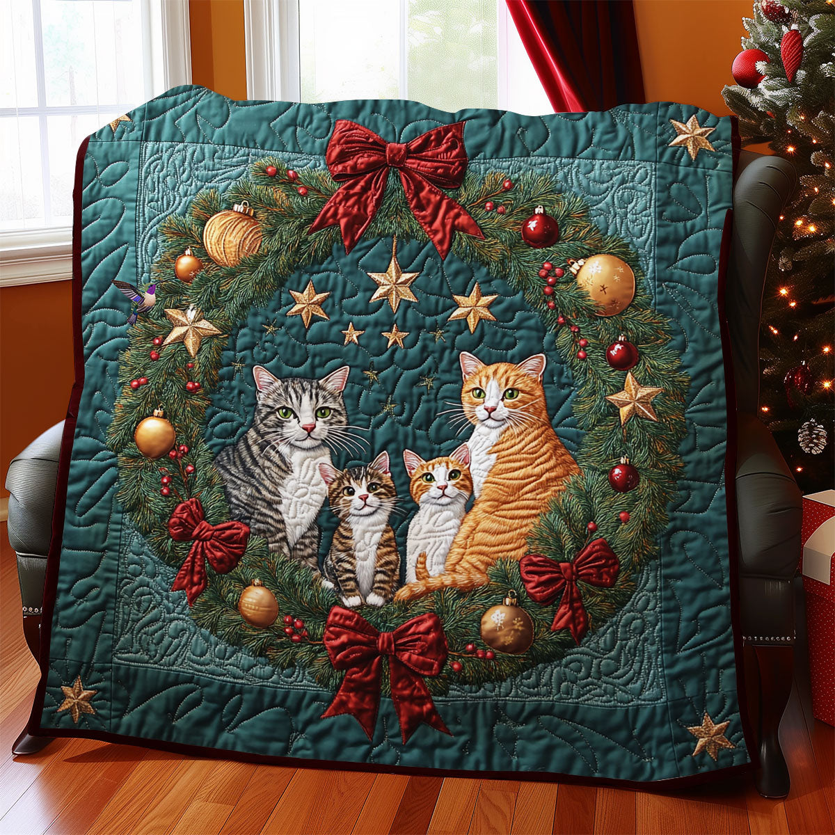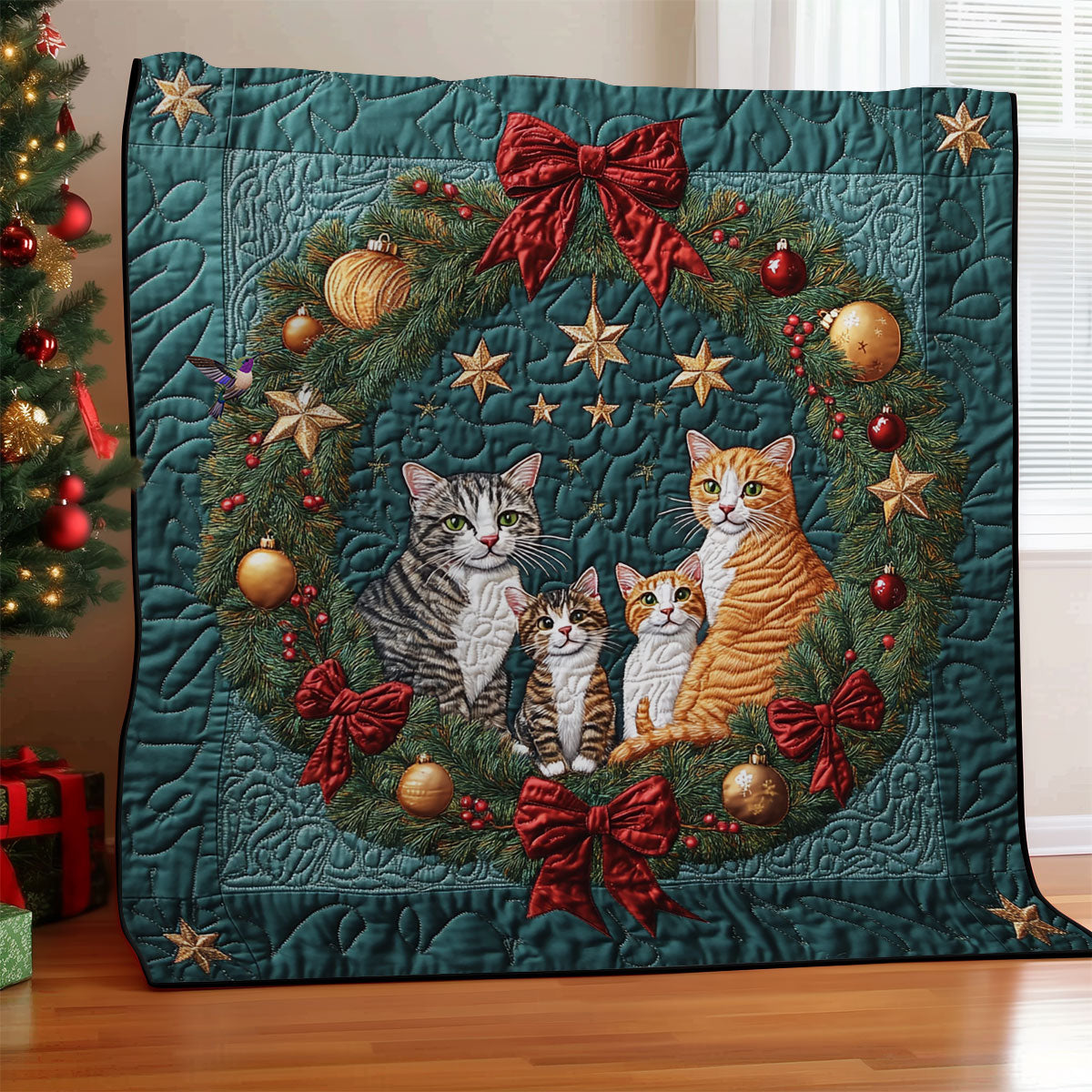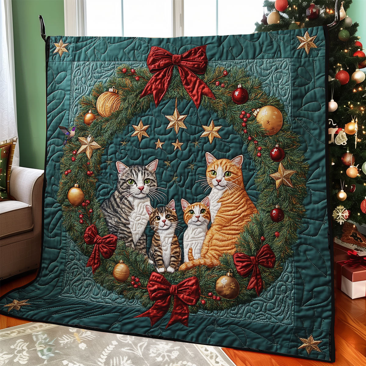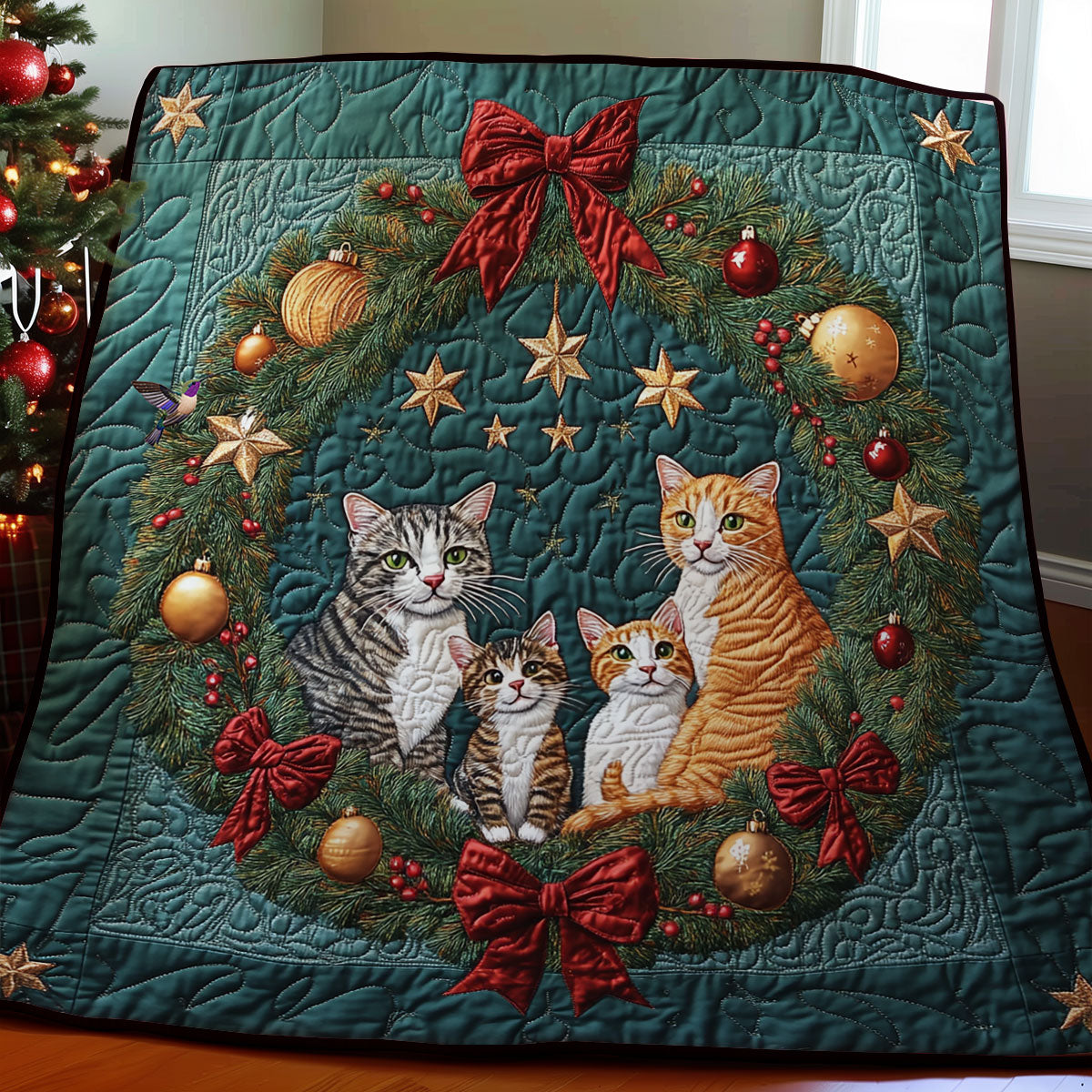 Christmas Wreath Cat WY1911078CL Quilt