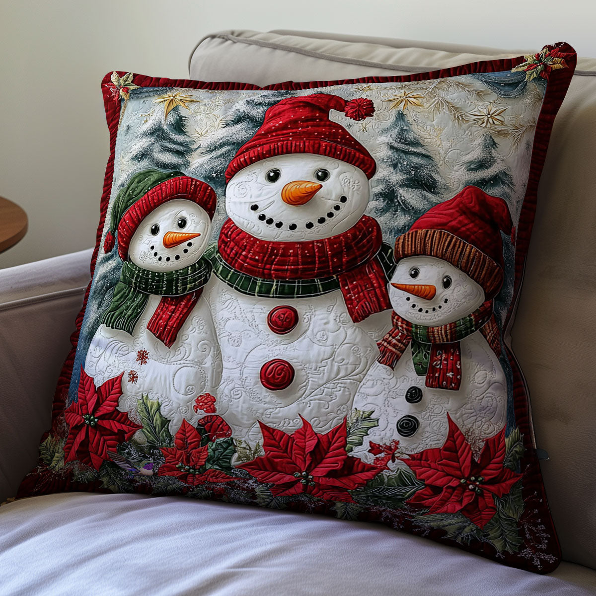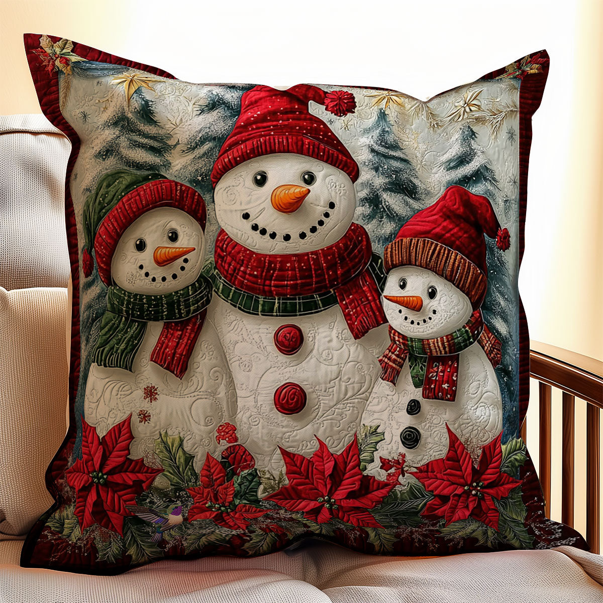 Poinsettia Snowman WY2911067CL Quilt Pillow Case