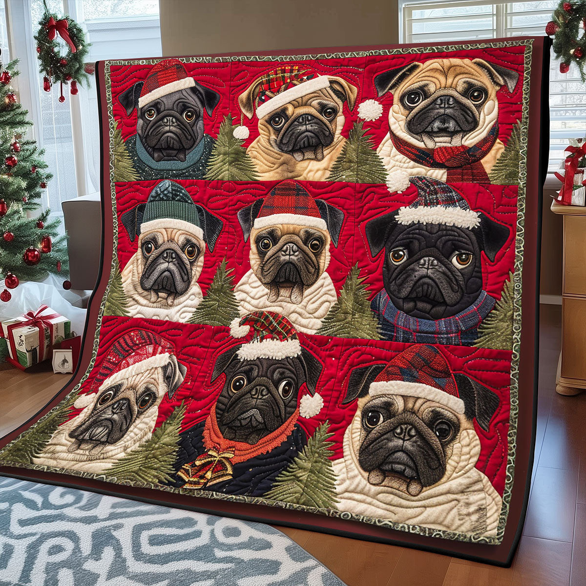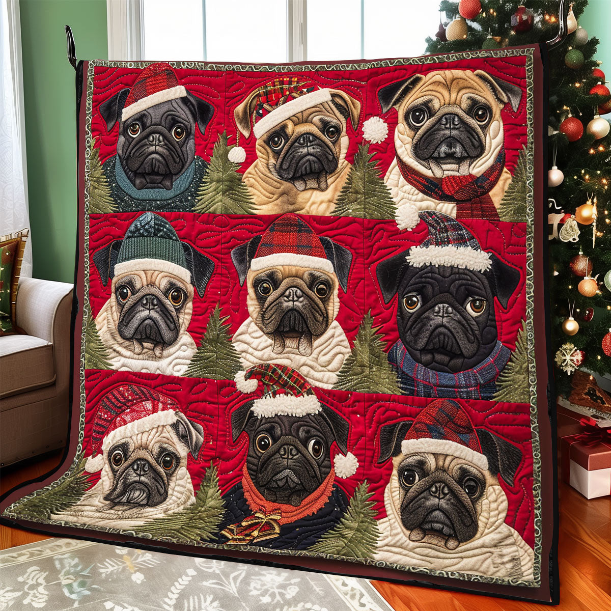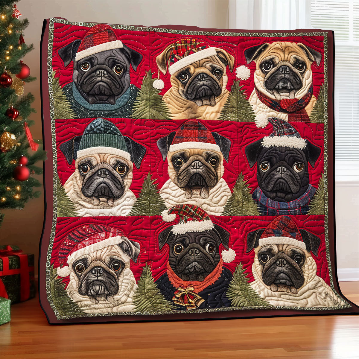 Pug Christmas Hats XR1308014CL Quilt
