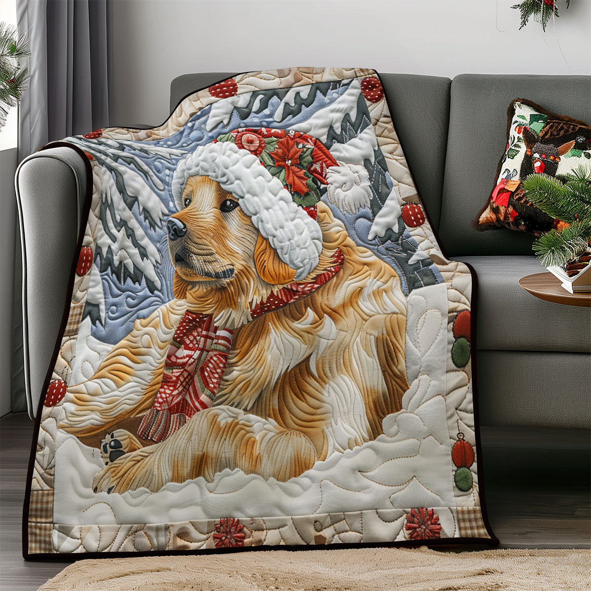 Meticulously quilted blanket carefully constructed with tight, durable stitches, reinforced seams keeping its shape and structure, ensuring it holds up beautifully over time.